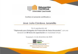 Universidad Casa Grande – Diplomado en Protección de Datos – José Julio Córdova Jaramillo – 2025-12.Dic.11
